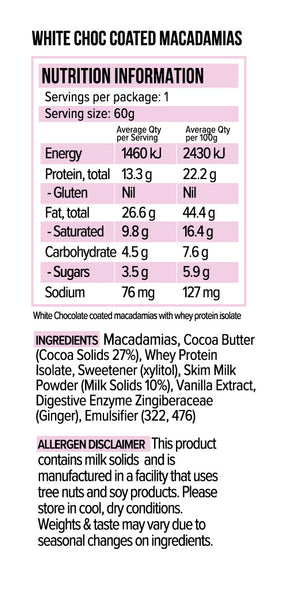 Vitawerx Protein White Chocolate Coated Macadamias 60g