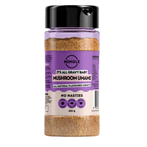 Mingle's mushroom gravy is full of umami goodness! This plant based number is the new kid on the block and yes this one is in a bottle for a little something different. You can use it how a traditional gravy would be used but also can use it as a delicious mushroom seasoning and sprinkle it on any raw meat or veggies before cooking to elevate your dish. You can also use it as a traditional gravy with a few tablespoons, a whisk and some hot water and we guarantee you will transfer Sunday roast into a festival of flavour! Great on steak, chips, roast veggies, roast meat.