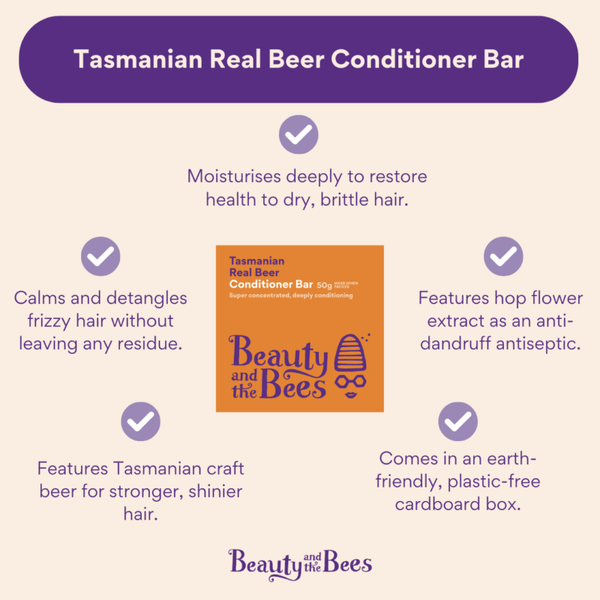 - Features Tasmanian craft beer for stronger, shinier hair.